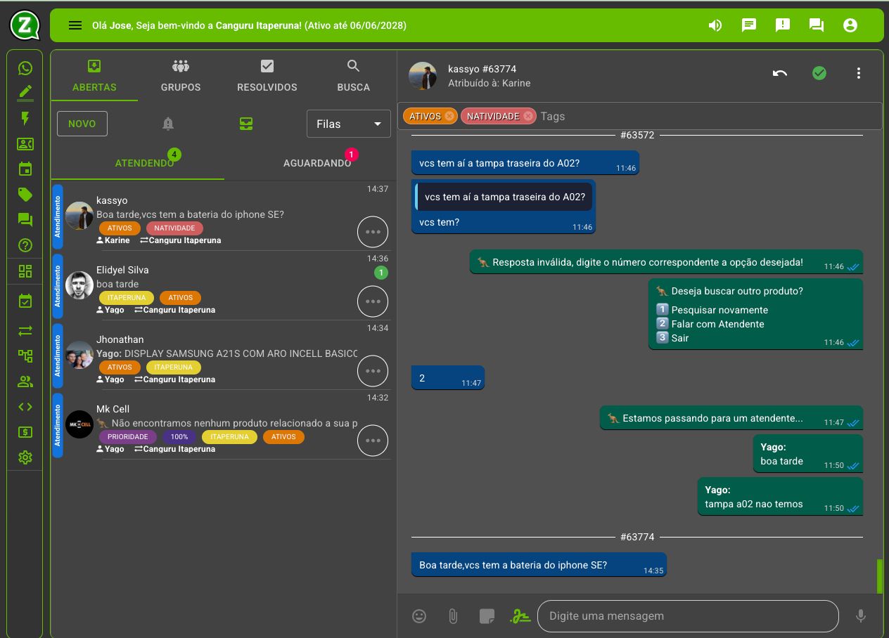 Etiquetas para identificar uma conversa ou um cliente, para facilitar os atendimentos